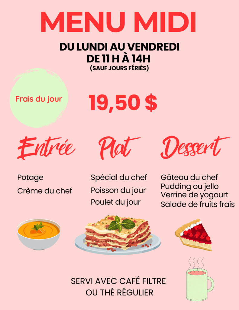 Ici, les employés forment une famille. Nous travaillons avec cœur et sans relâche chaque jour et nous sommes fiers des réalisations de notre équipe. Dynamiques, passionnés, travaillants et disciplinés, nous aimons les gens, la bonne bouffe et les belles créations. Des produits frais, des recettes maison et un décor apaisant. Les assiettes sont réalisées avec passion par nos cuisiniers qui démontrent leur art dans de magnifiques présentations et le service personnalisé fait que les clients se sentent chez eux.